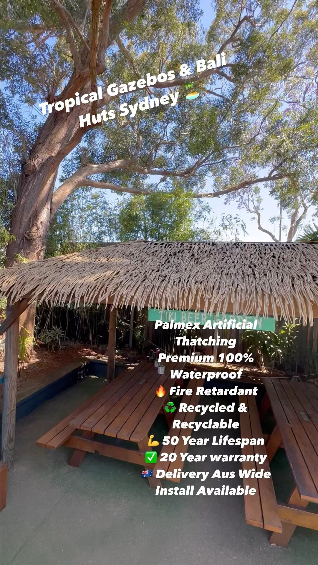 AUSTRALIA’S LARGEST SUPPLIER OF ARTIFICIAL THATCHED ROOFING WITH A 50 YEAR LIFESPAN